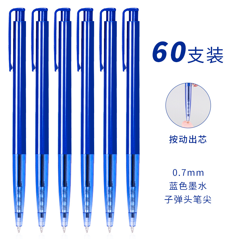 得力6506 圆珠笔 按动圆珠笔 蓝色 办公学生文具 蓝色圆珠笔60支/盒