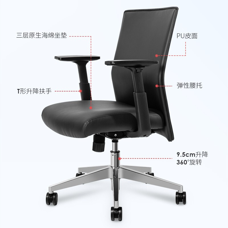• 得力(deli)91102 电脑椅 家用办公椅 转椅人体工学皮椅子 时尚升降座椅 皮质扶手