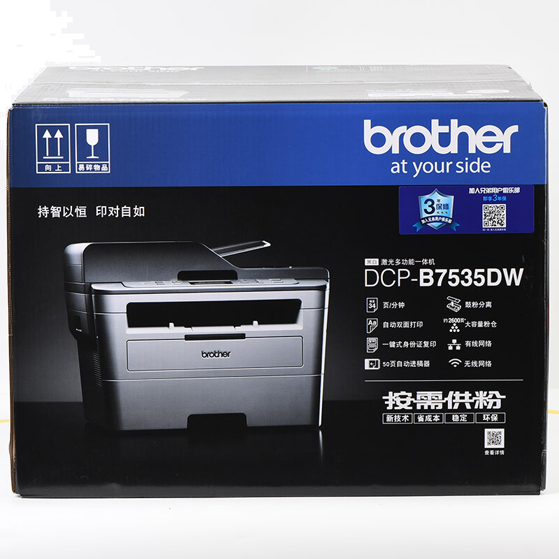 兄弟(brother) DCP-B7535DW 按需供粉系列 黑白激光无线双面打印多功能一体机(打印 复印 扫描)