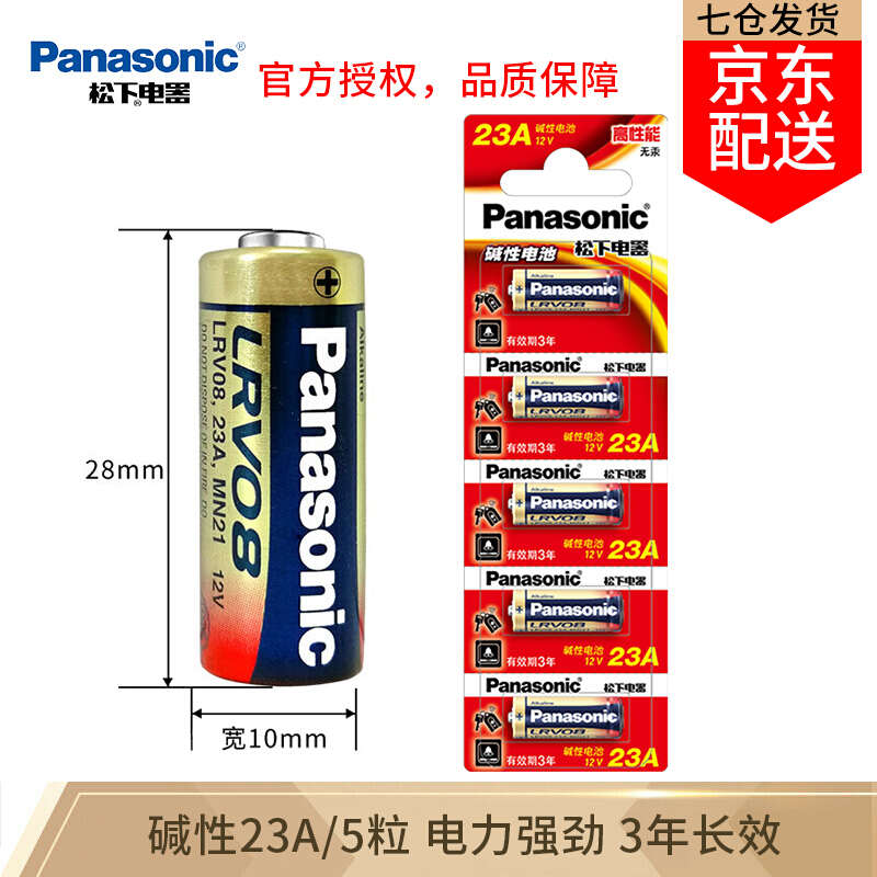 • 松下23A12V电池27A碱性适用卷帘门遥控器无线门铃开关老人呼叫器通用型对拷电动卷闸门伸缩门钥匙等 1粒