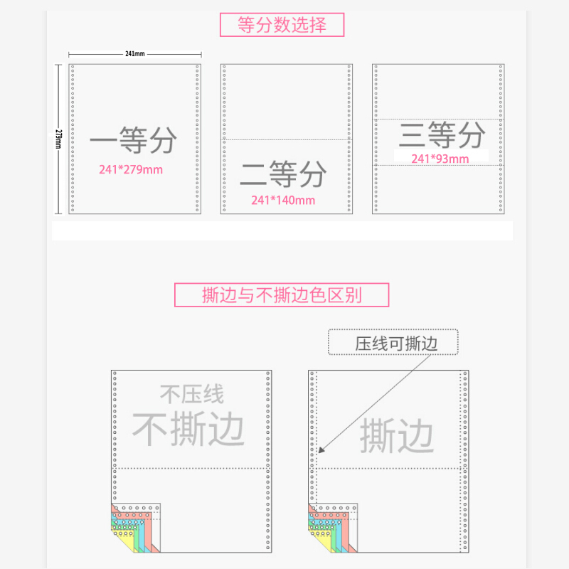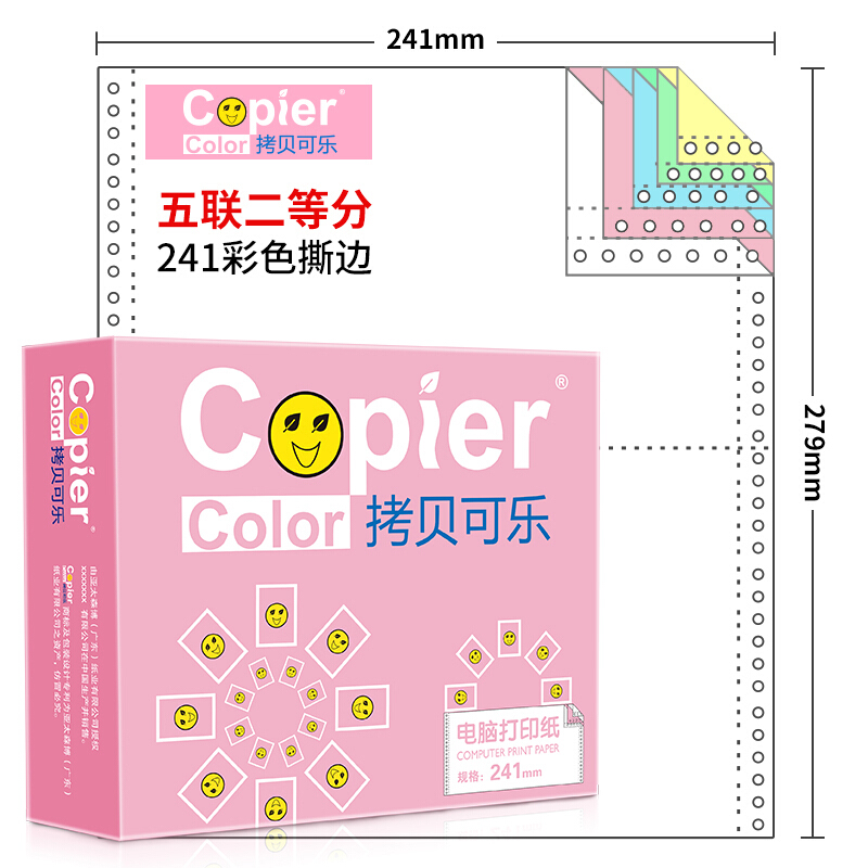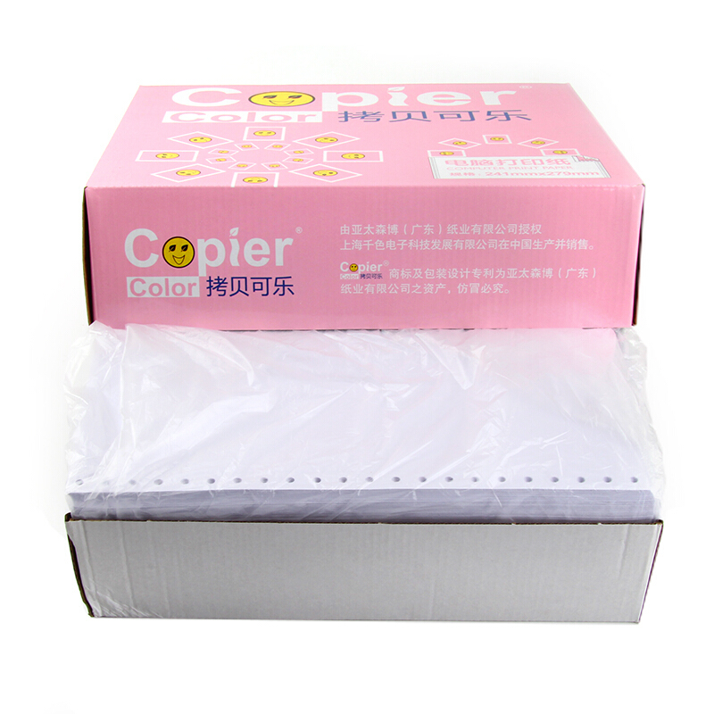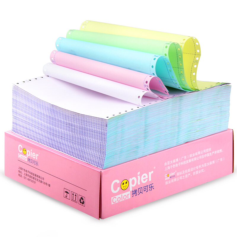 • 亚太森博百旺拷贝可乐三联三等分针式电脑打印纸出入库单 彩色80列241-3-1/3C(不撕边 白红黄1000页/箱)