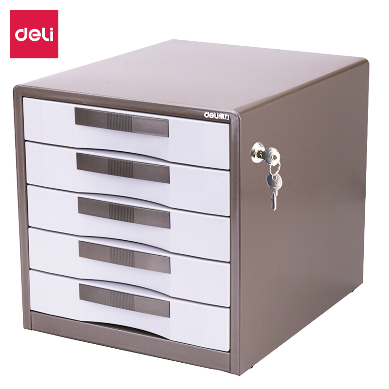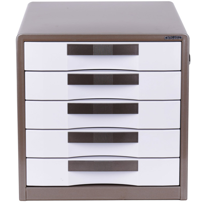 • 得力(deli) 桌面资料整理文件柜 五层带锁塑料抽屉柜 四层硬塑文件盒收纳柜 金属5层文件柜(棕色)9702
