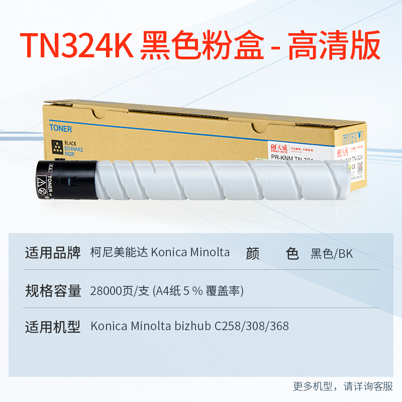 - 天威 TN-324K 墨粉盒 黑色 适用柯尼卡美能达Konica Minolta bizhub C308碳粉308墨盒 柯美368复印机粉盒 粉仓