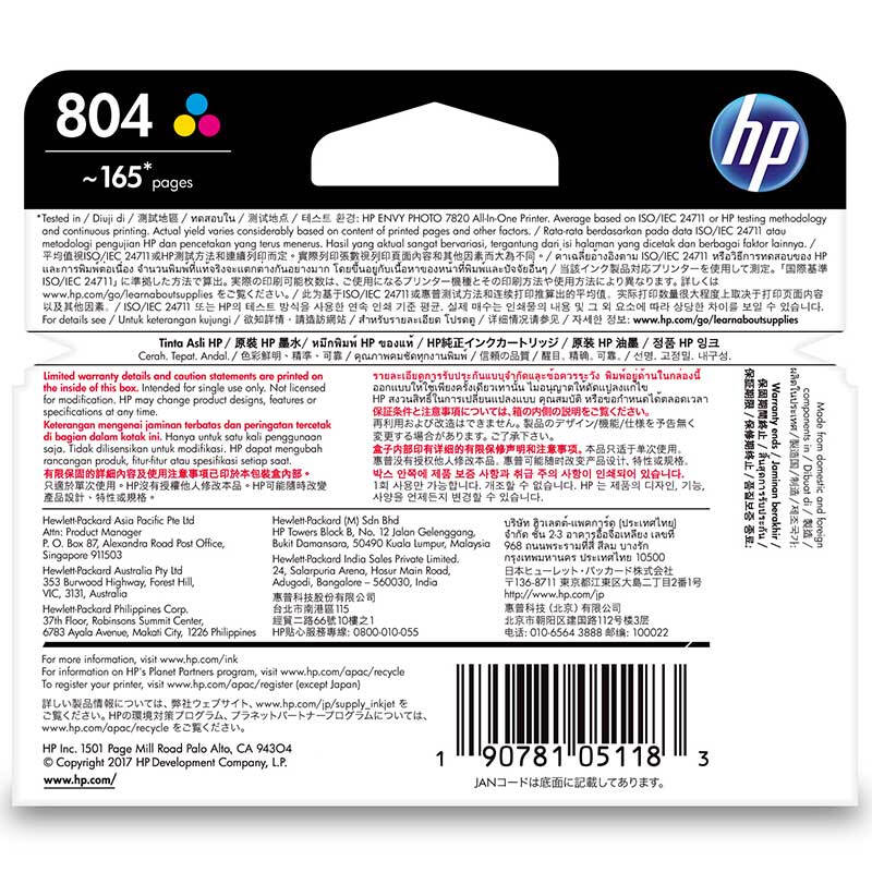 - 惠普T6N10AA 804 黑色墨盒(适用于HP ENVY Photo 6220 /HP ENVY Photo 6222)