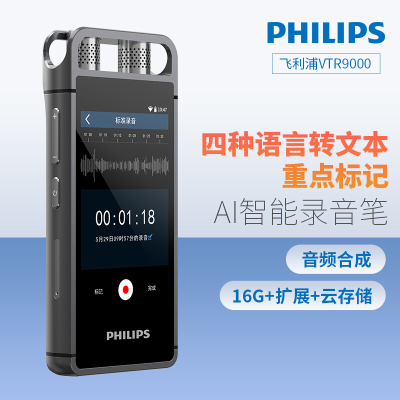• 飞利浦(PHILIPS)VTR9000 16G AI智能录音笔 终身免费转文本 录写同步 WIFI 翻译 云空间储存