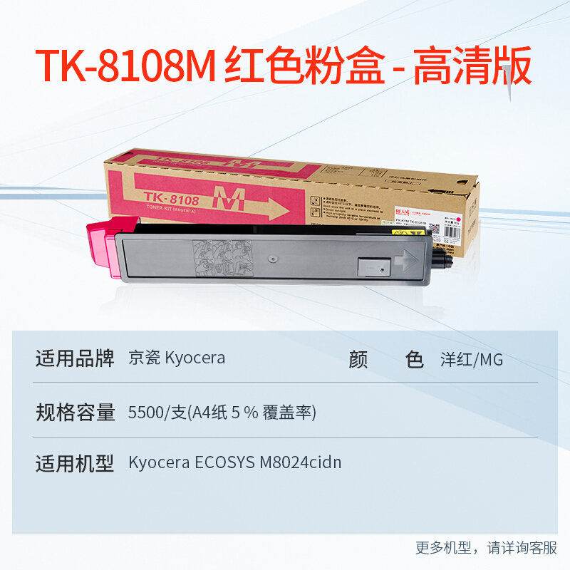 - 天威 TK-8108M粉盒 红色 适用京瓷KYOCERA ECOSYS M8024cidn复印机墨粉 打印一体复合机碳粉 粉筒粉仓