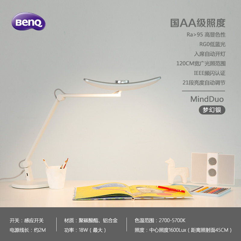 • 明基(BenQ) MindDuo减蓝光频闪国AA级照度自动开灯智能调光儿童卧室书桌学习阅读led护眼台灯(太空银)