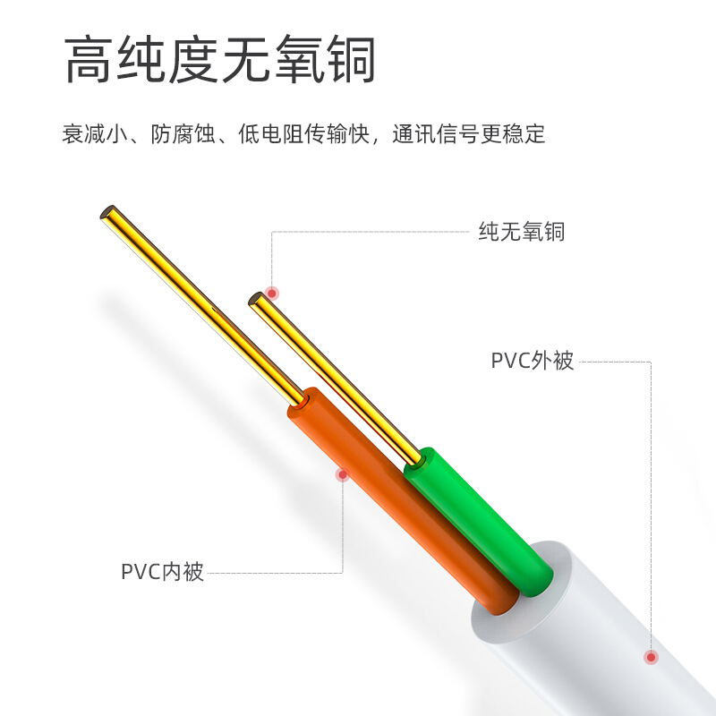 • 胜为(shengwei)电话线2芯单股无氧铜线芯0.4mm座机/传真机电话延长线连接线100米 TEC-1100