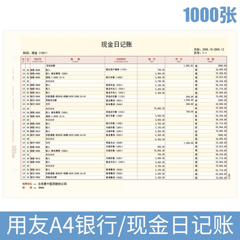- 西玛用友a4账簿打印纸总账KZJ101 账簿账本总账三栏式打印纸 现金 银行日记账 激光账簿打印纸 用友A4/银行现金日记账 KZJ102