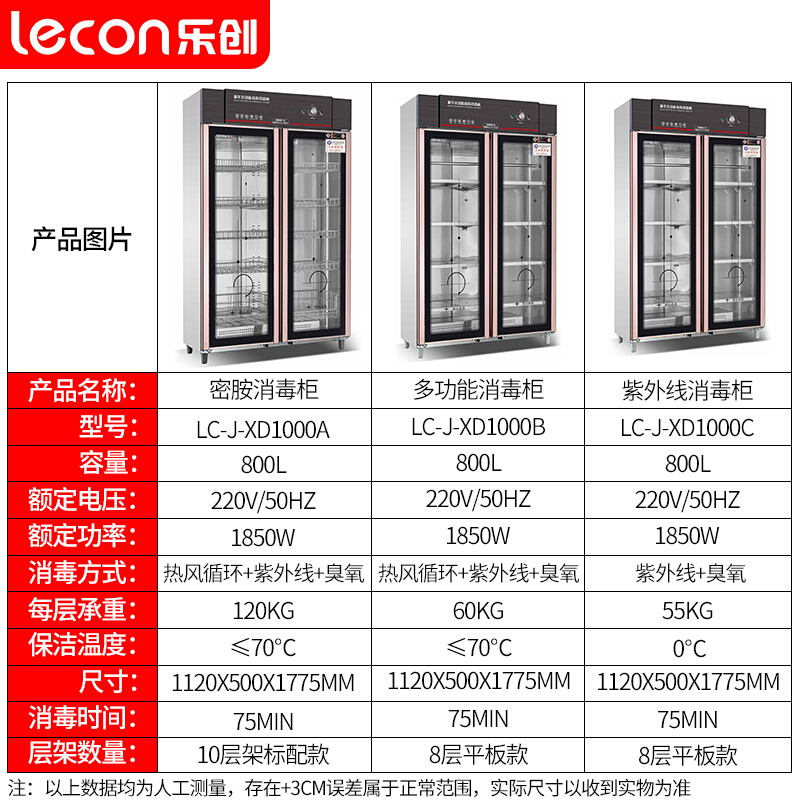 - 乐创(lecon)商用消毒柜多功能衣物中温餐具柜密胺800L消毒柜不锈钢大型学校餐厅饭堂消毒碗柜LC-J-XD1000B