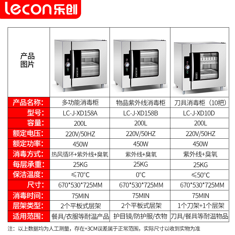 • 乐创 lecon 商用不锈钢厨房多功能物品刀具衣物餐具紫外线臭氧消毒柜 LC-J-XD158A