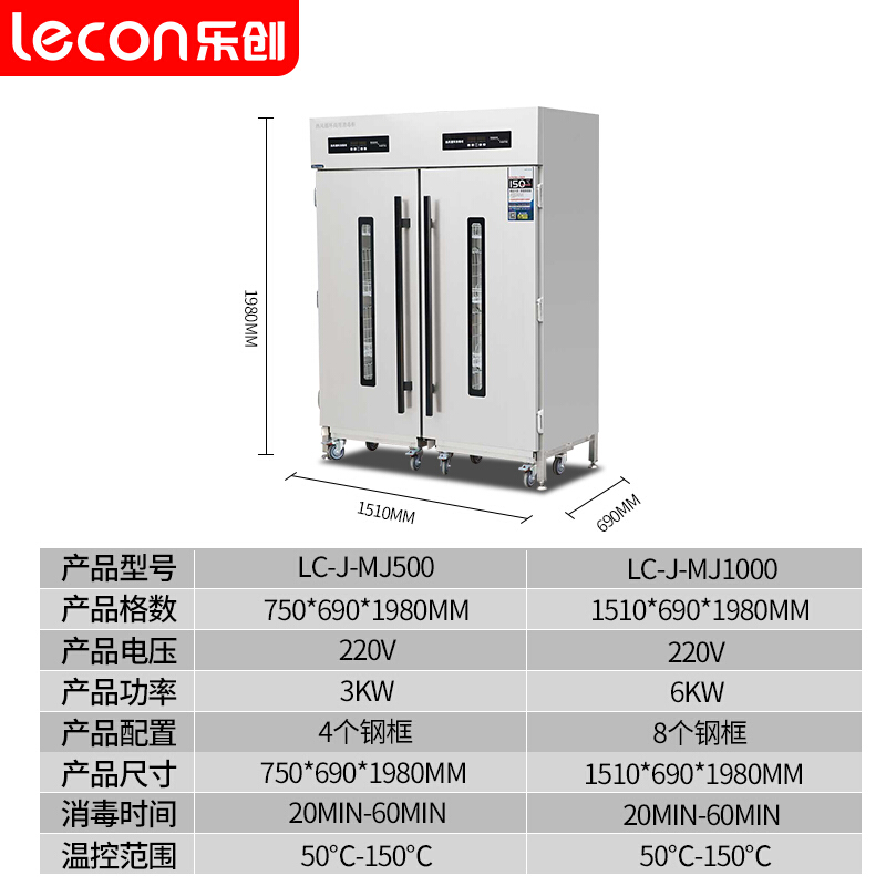 - 乐创(lecon)工程电脑款双门推车式高温热风循环大容量消毒柜饭堂工厂食堂商用餐盘款消毒柜LC-J-MJ1000
