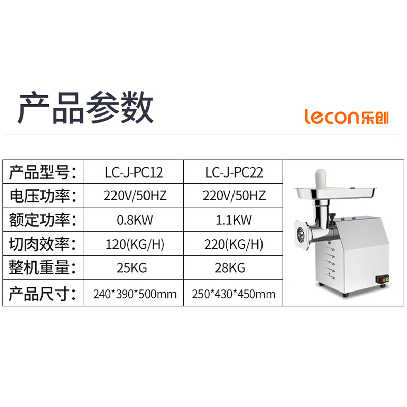 • 乐创(lecon) 商用台式绞肉机 220KG/H不锈钢碎肉机绞肉灌肠机 LC-J-PC22