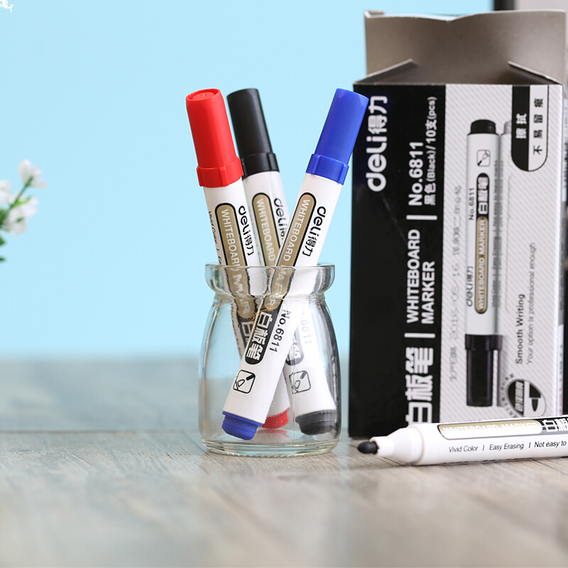• 得力 6811 办公会议白板笔 可擦易擦红色 10支/盒