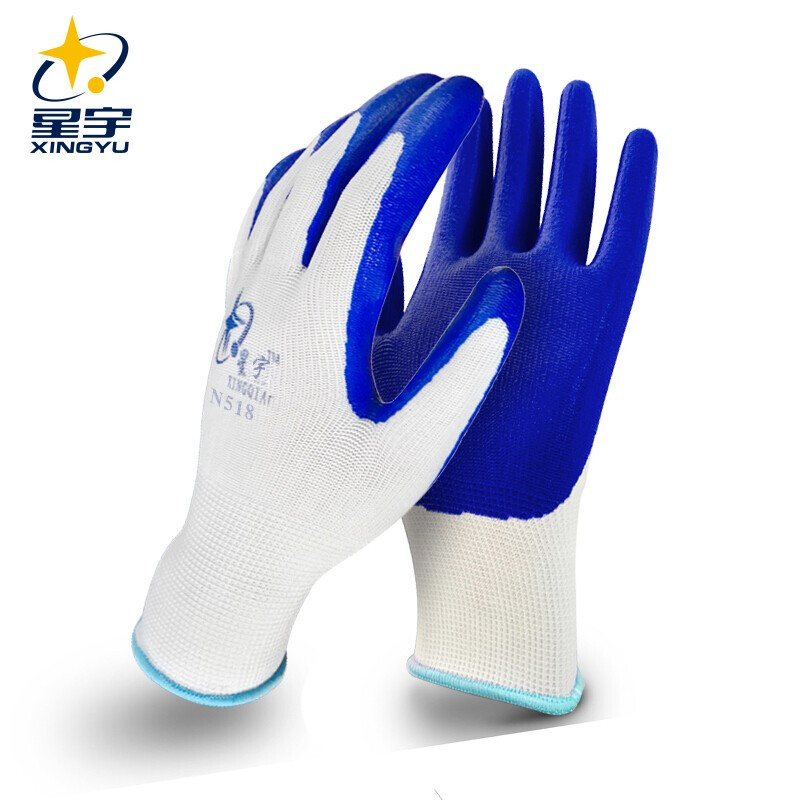 • 星宇(XINGYU)劳保手套N518 丁晴浸胶防滑耐磨防油防割防水透气涂胶木工纺织机床手套 N518蓝色12副 M码