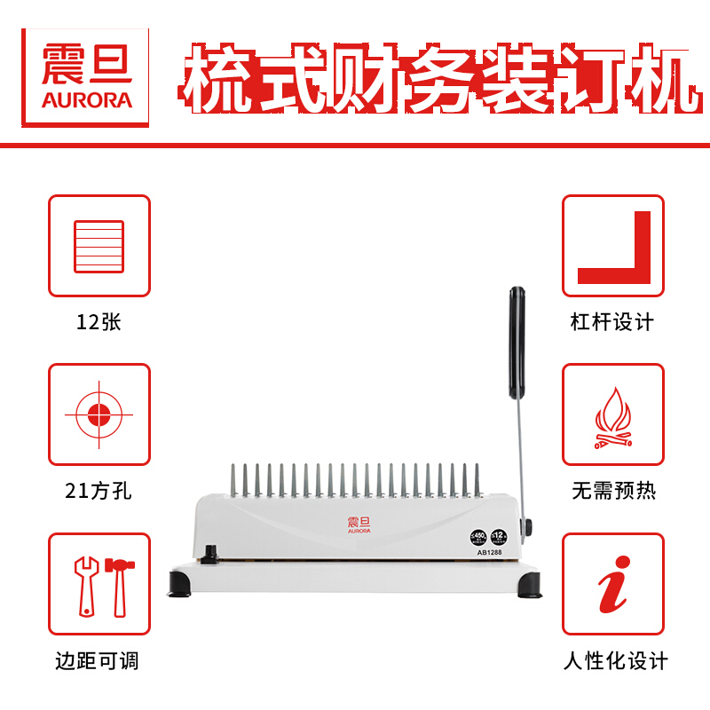 震旦AURORA胶圈 /夹条装订机 21孔文件打孔机 省力型 AB1288