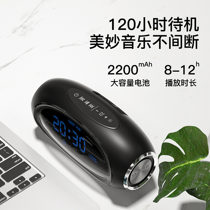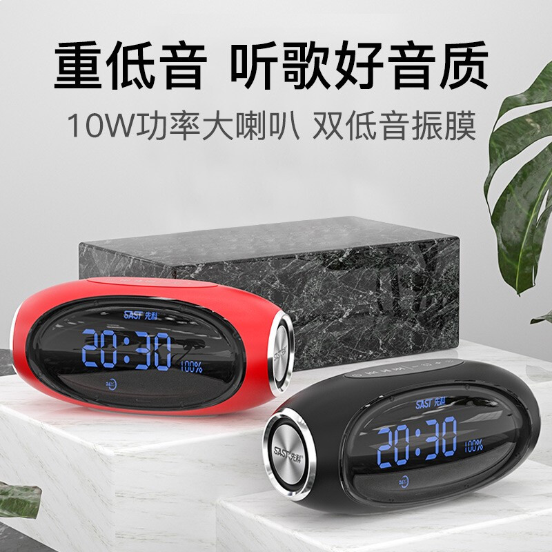 • 先科(SAST) A18 蓝牙音箱 无线智能时钟闹钟低音炮户外插卡手机电脑车载迷你小音响 红色