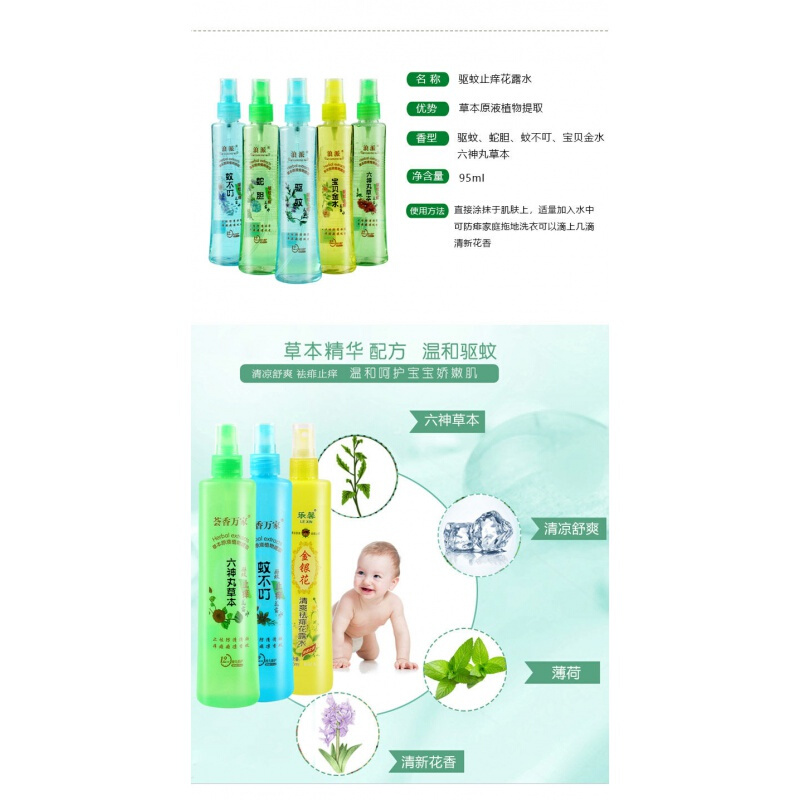 蚊不叮花露水金银花清凉舒适祛痱 95毫升六神草本花露水一瓶