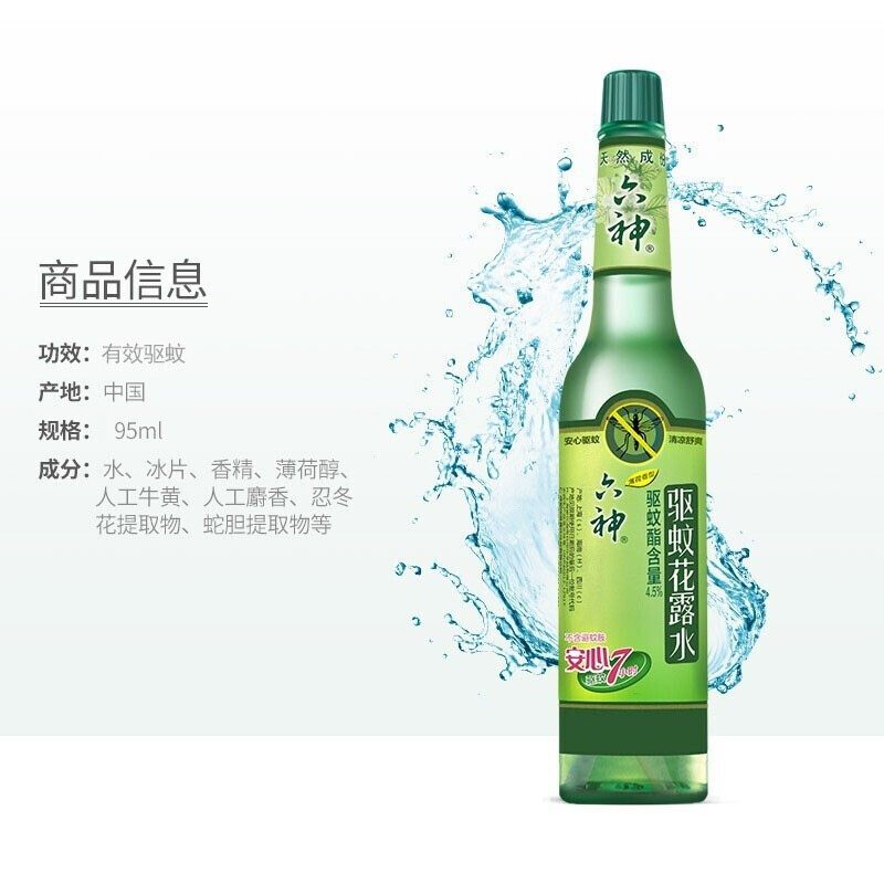 六神驱蚊花露水95ml小瓶薄荷香型清香经典老式玻璃瓶清凉舒爽驱蚊水户外防蚊水蚊不叮清凉露提神醒脑 1瓶 95ml/瓶 六神