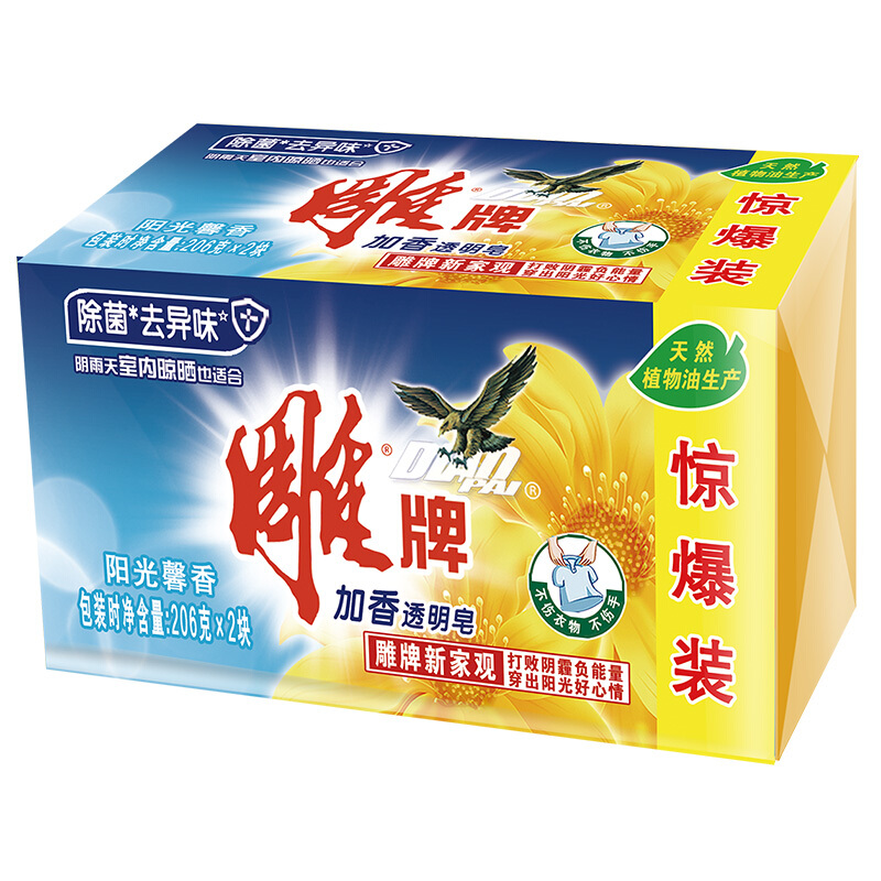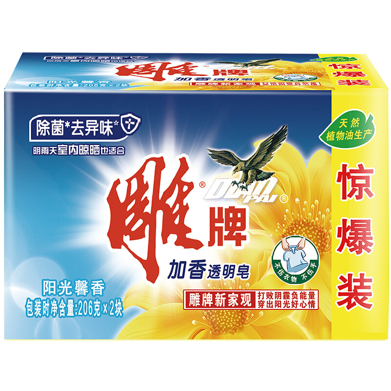 • 雕牌 除菌加香透明皂/洗衣皂/肥皂206g*2块 除菌去异味 天然植物油提炼 阳光馨香