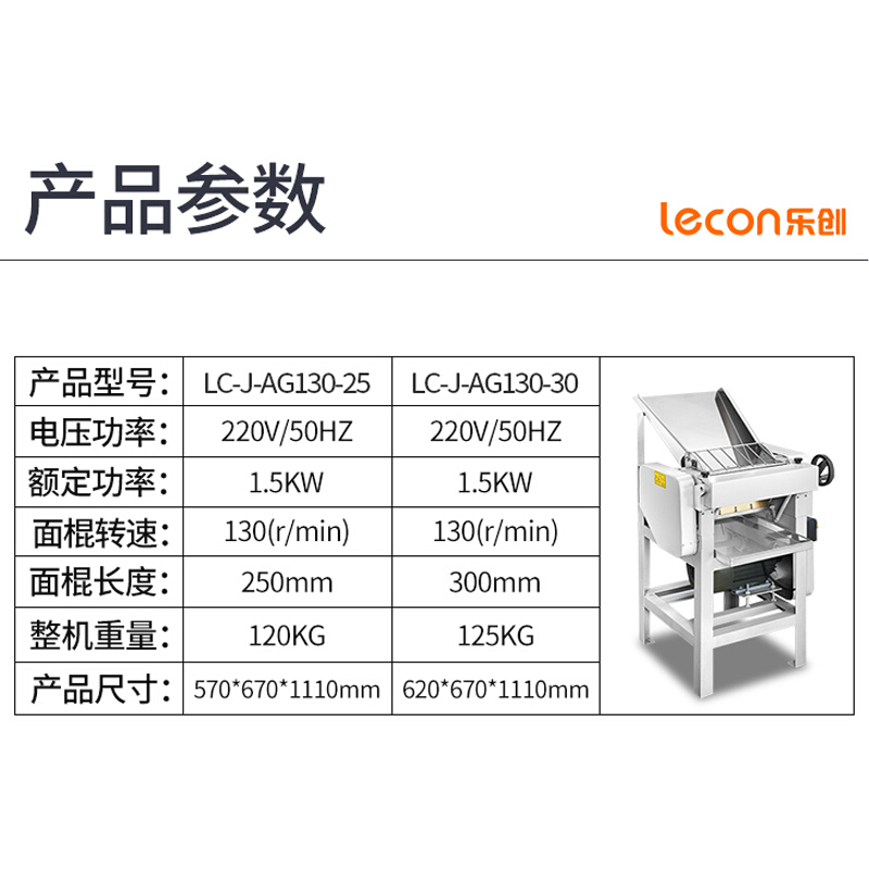 • 乐创(lecon) 商用高速压面机 300mm包子皮机馒头揉面机擀面皮机 LC-J-AG130-30