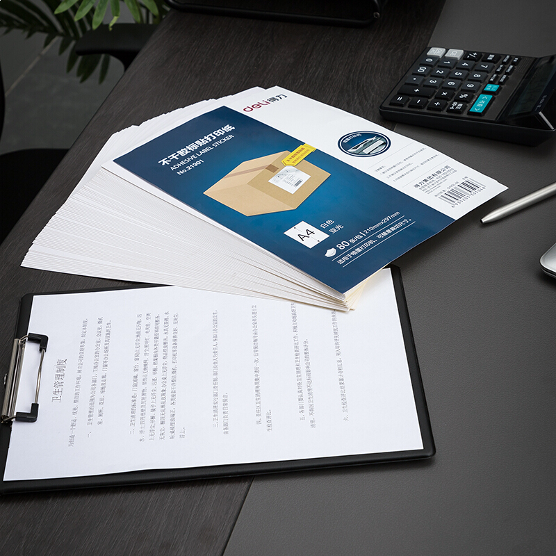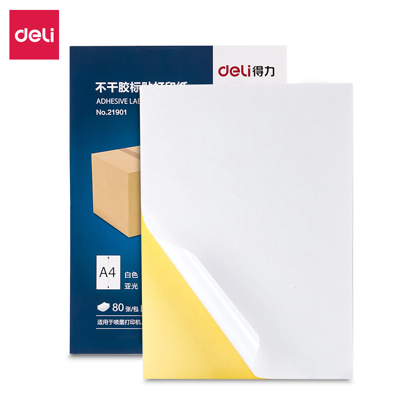 • 得力21901 A4/80张不干胶标贴打印纸 带背胶亚面铜版标签纸 自切割