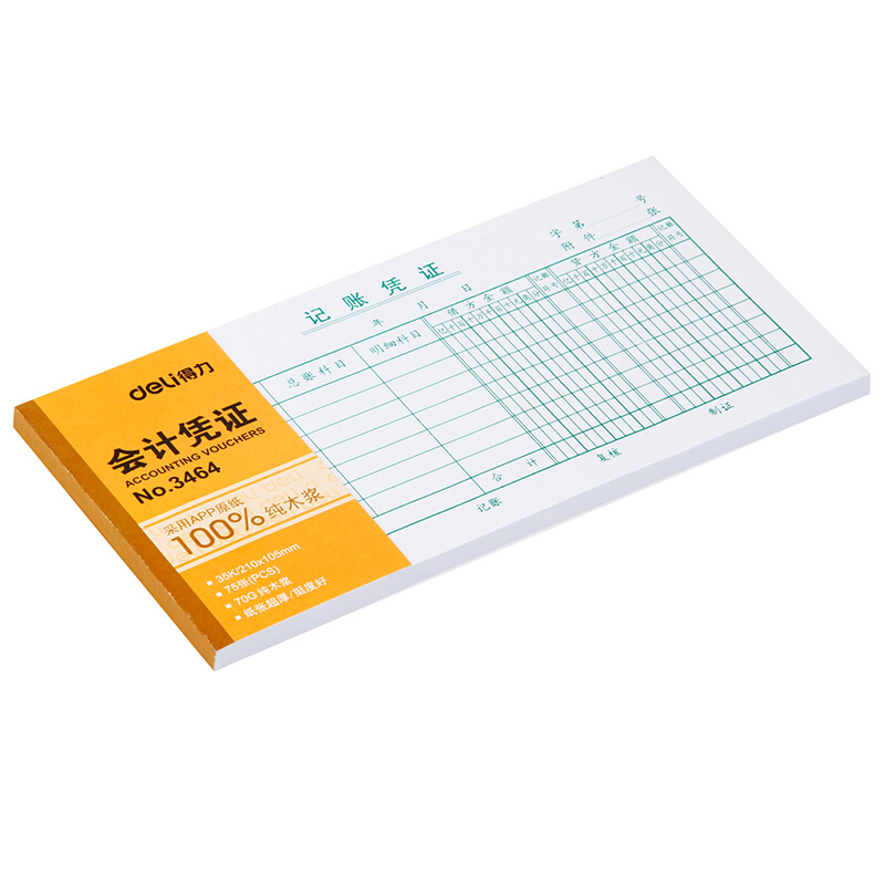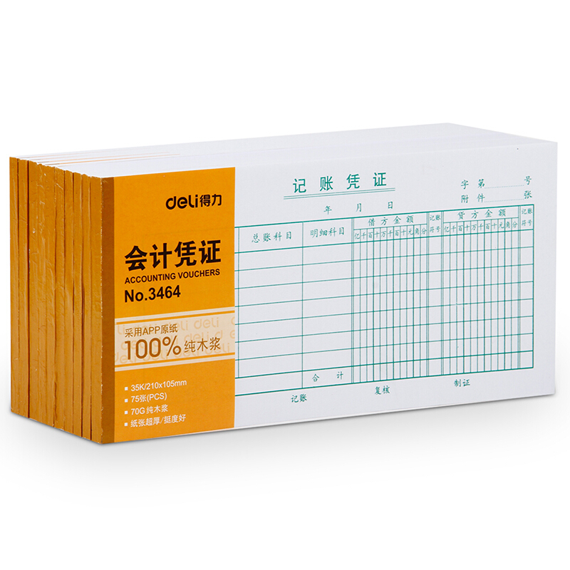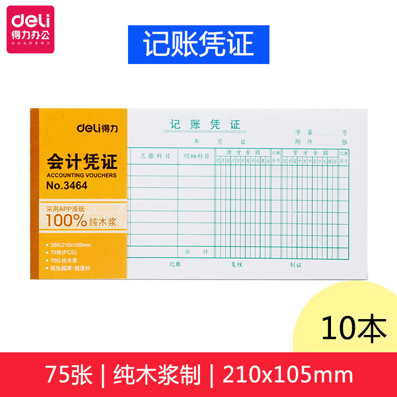 • 得力(deli)3464记账凭证 财务会计凭证单据收据 10本装