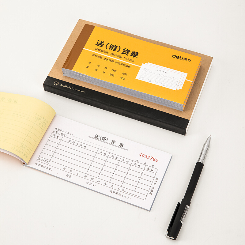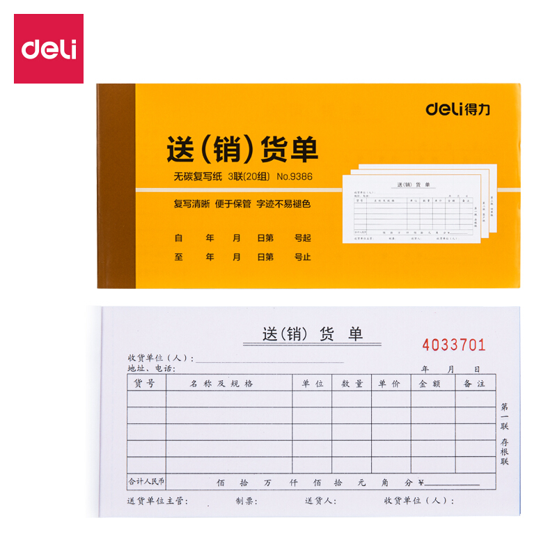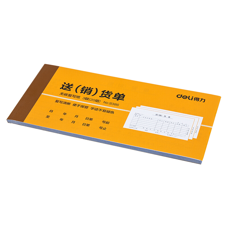 • 得力9386 无碳复写三联送(销)货单