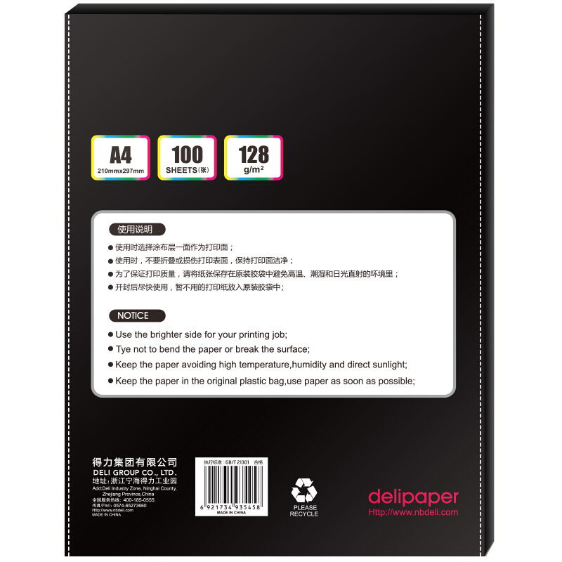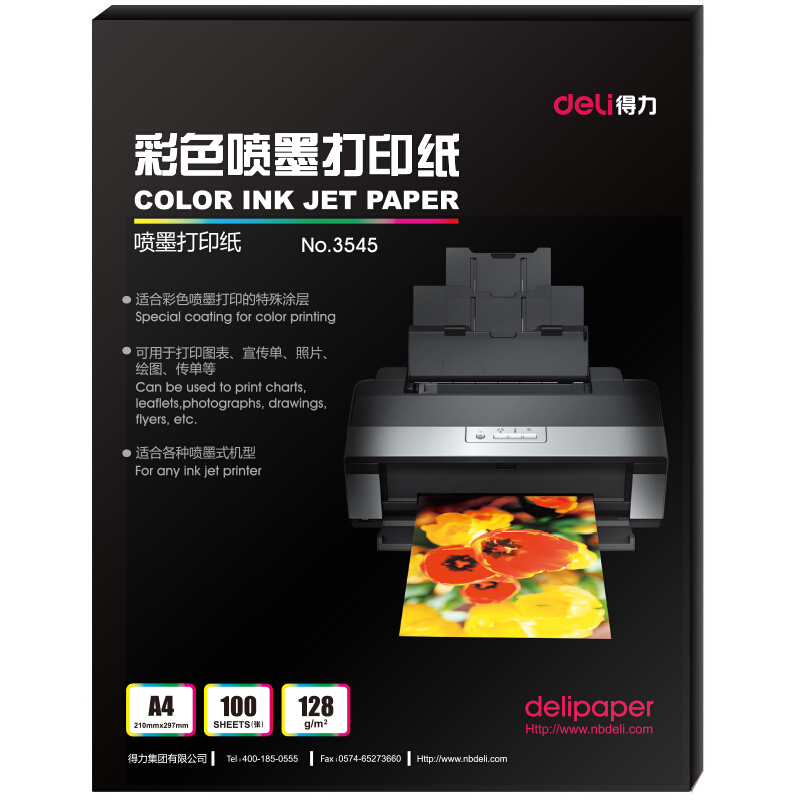 • 得力(deli)A4 128g彩色喷墨打印纸 宣传单绘图传单打印纸 100张/包 3545