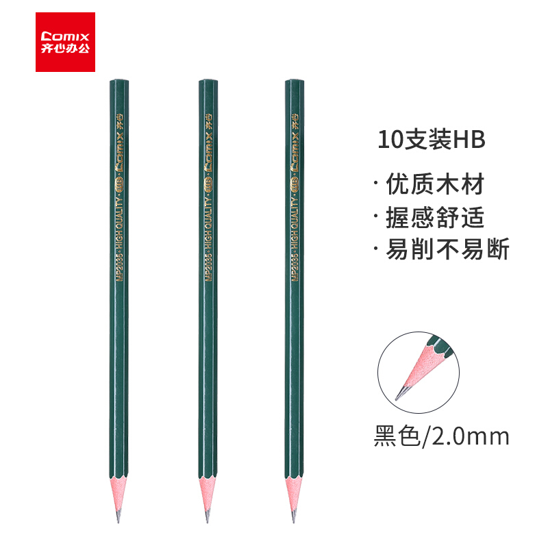 齐心(Comix) 专业素描绘图石墨铅芯HB铅笔学生铅笔 10支/盒 MP2035