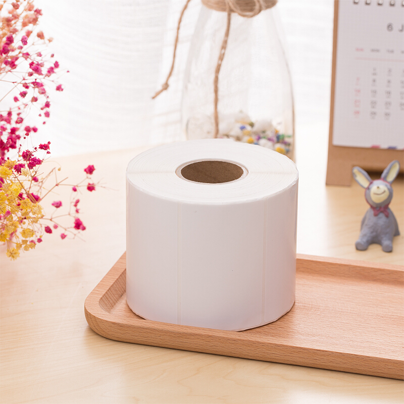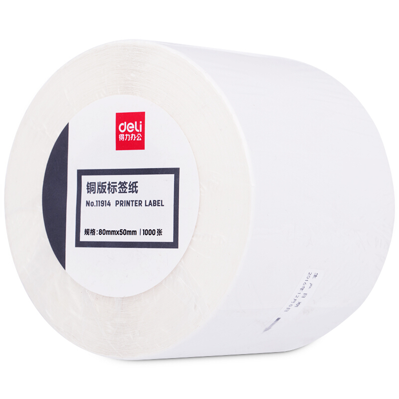 得力(deli)通用铜版纸不干胶标签纸/条码纸/打印贴纸 热转印打印纸 铜板卷纸空白贴纸 80*50mm 1000张/卷(11914)
