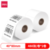 • 得力40*80mm 热敏标签打印纸480张*2卷12010